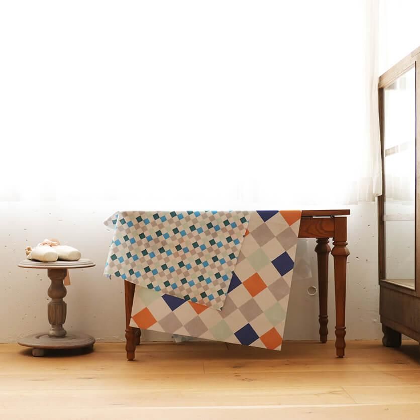 ひし形ってこんなに楽しいかたちだったんだ!と改めて思えるような、テキスタイルデザイン。