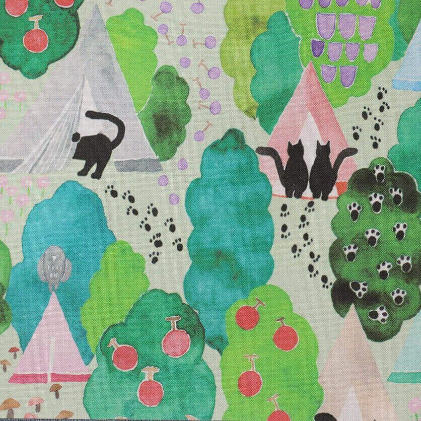 実り豊かな森の中では、猫たちが自由に気ままにキャンプを楽しんでいます。