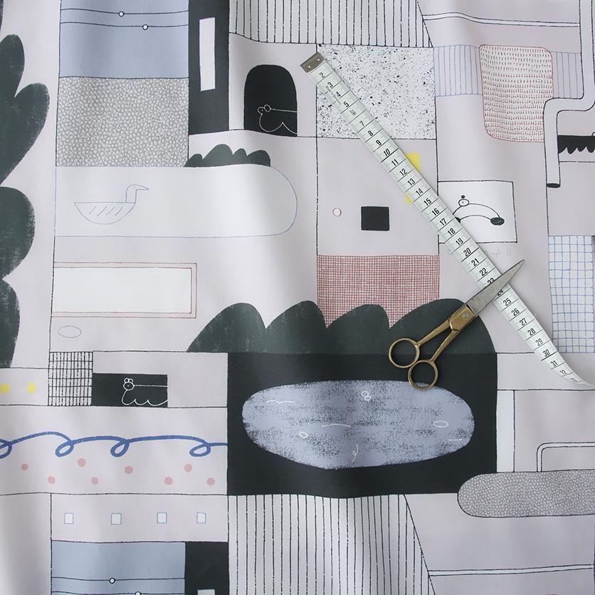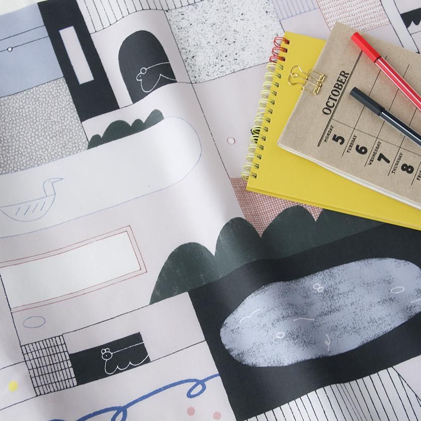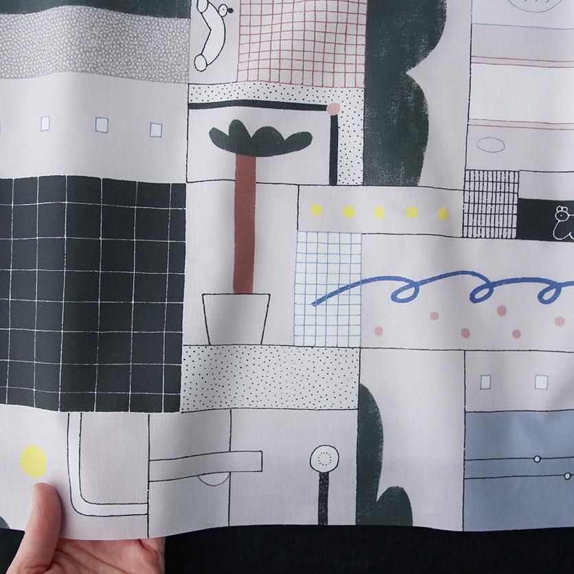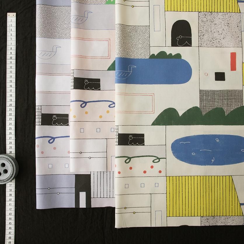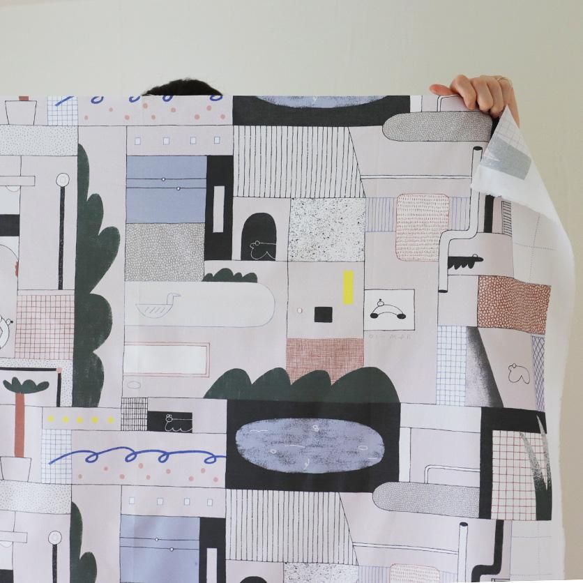 ・現在、すべてのデザインのプリントに使用している生地は6種類です。素材は100%コットン(オックス)・100%コットン(ダブルガーゼ)・100%コットン(ローン)・コットンリネン(ビエラ織)・100%コットン(ツイル)・100%コットン(キャンバス・11号帆布)です。