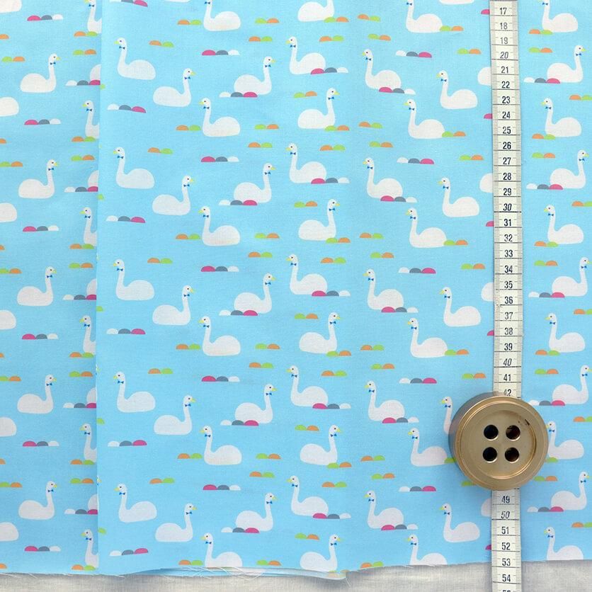 きらきらと光る、澄んだ水の上に、たたずむ白鳥たちがモチーフのテキスタイルデザインです。