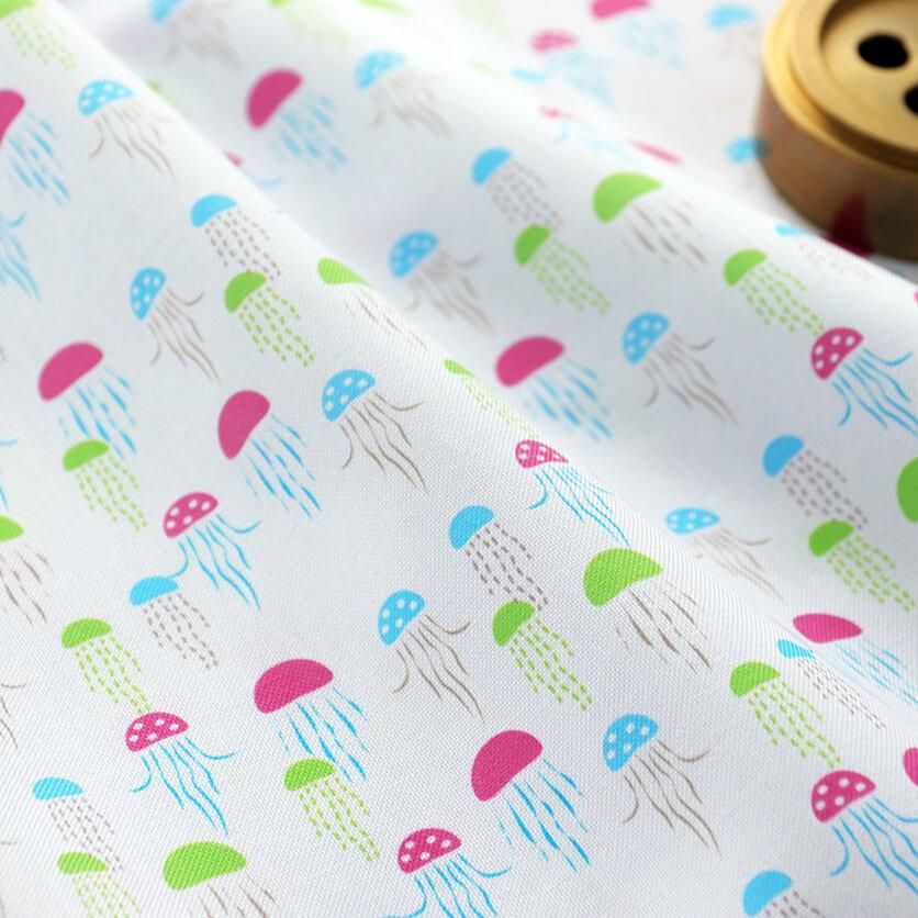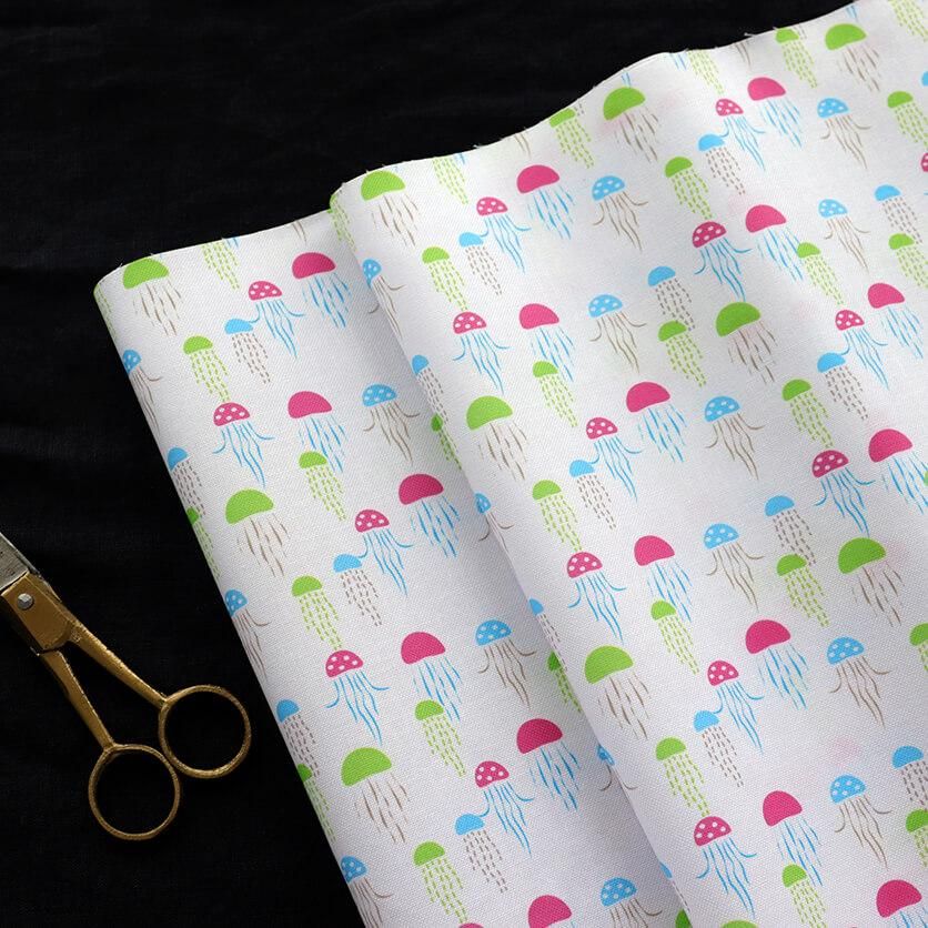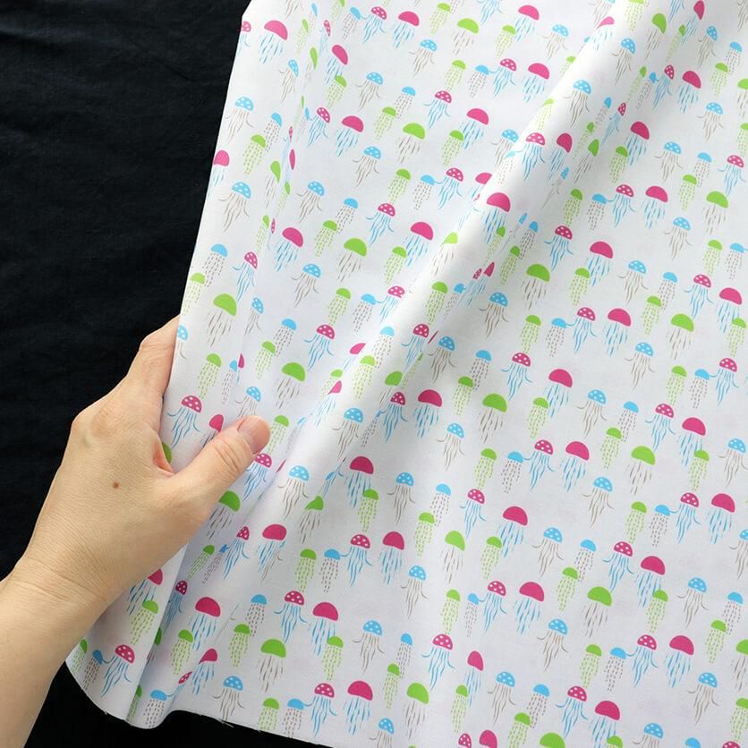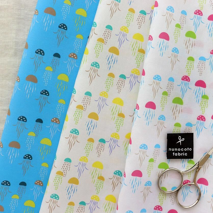 リズミカルに漂うクラゲたちが、とってもキュートなテキスタイルになりました。