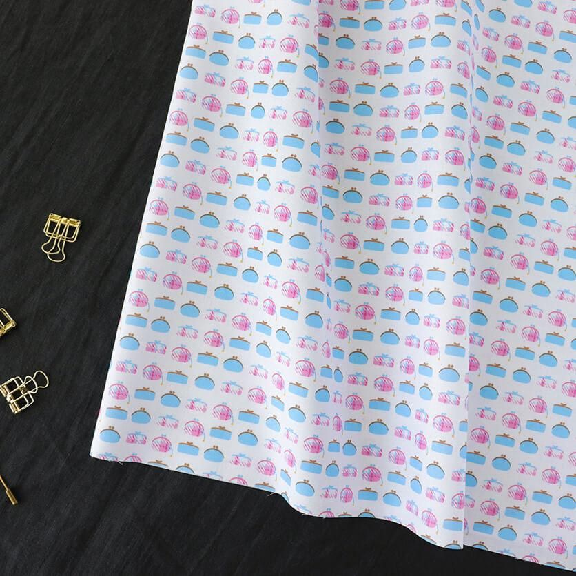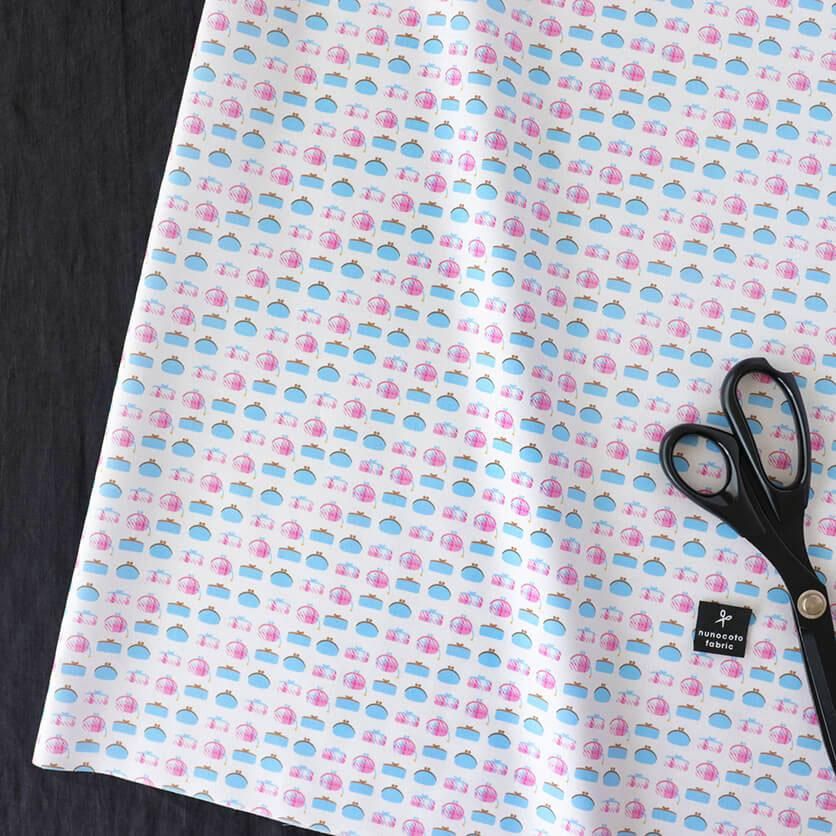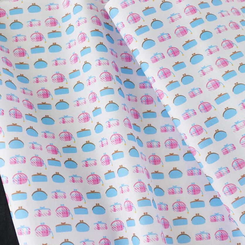 小ぶりなサイズ感できれいに並んだ姿が可愛らしい、がまぐち柄のテキスタイルデザインです。