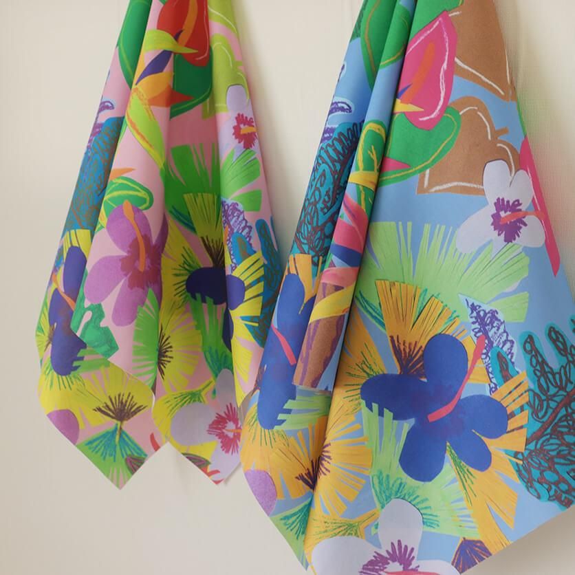 お部屋の主役になるテーブルクロスやカーテン、クッションカバーにすれば、一瞬でお部屋が華やかな楽園に早変わりしますよ。