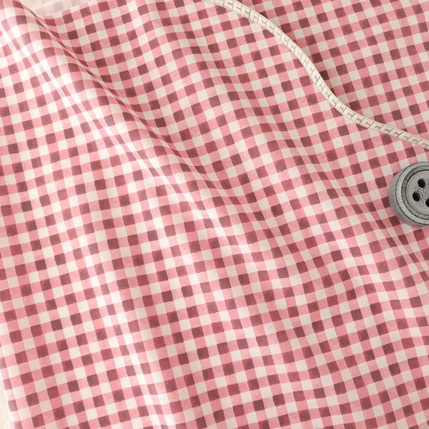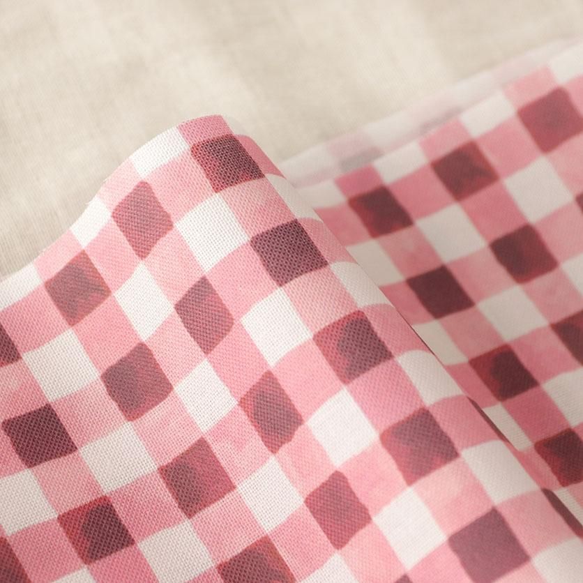 色の重なりや、かすかに見える筆のタッチが、定番のギンガムチェックにやわらかな表情をプラス。