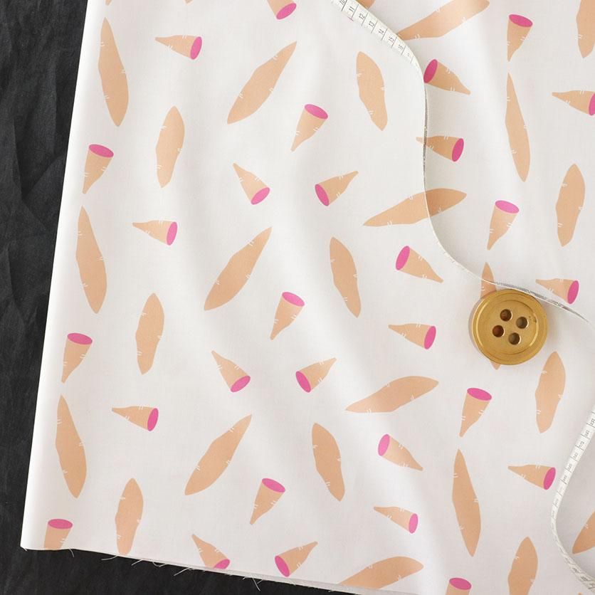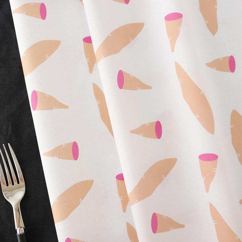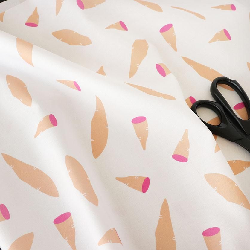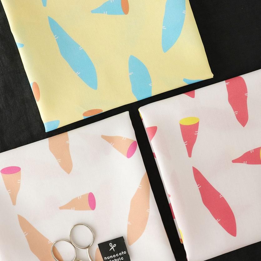 このカラフルなさつまいもの生地で、エプロンやランチョンマットなどのキッチンアイテムや、お子様の巾着袋やレッスンバッグを作ってみてはいかがでしょうか。