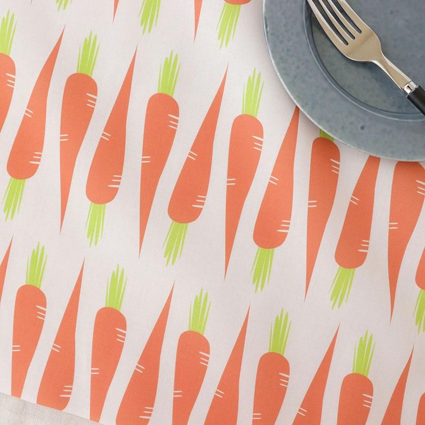 ポップな色使いが、お部屋や小物をパッと明るく見せてくれる、愛らしいにんじんをモチーフにしたデザインです。