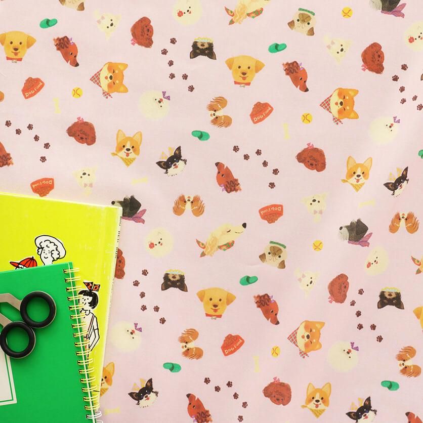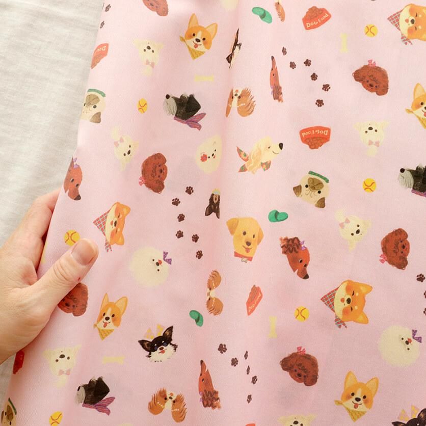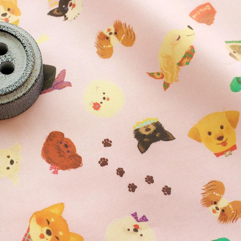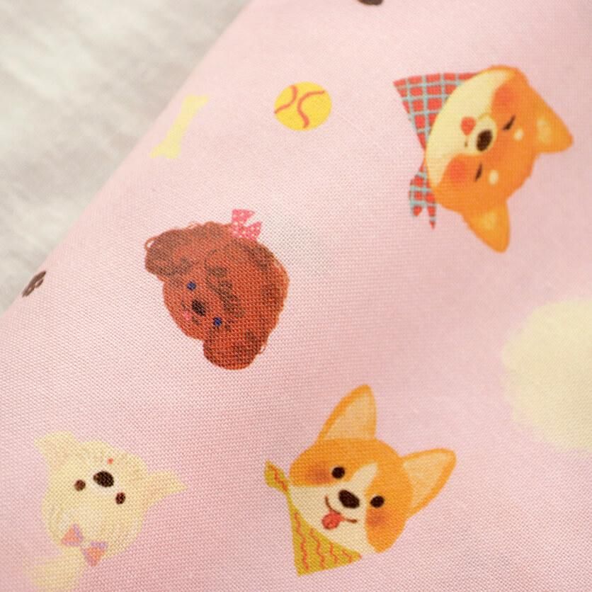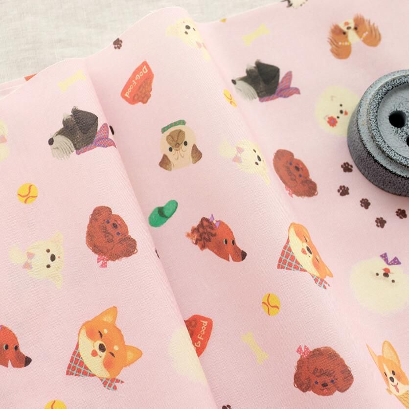 飼い主さんに可愛くおめかししてもらった、チャーミングな表情がずらりと並んだテキスタイルです。