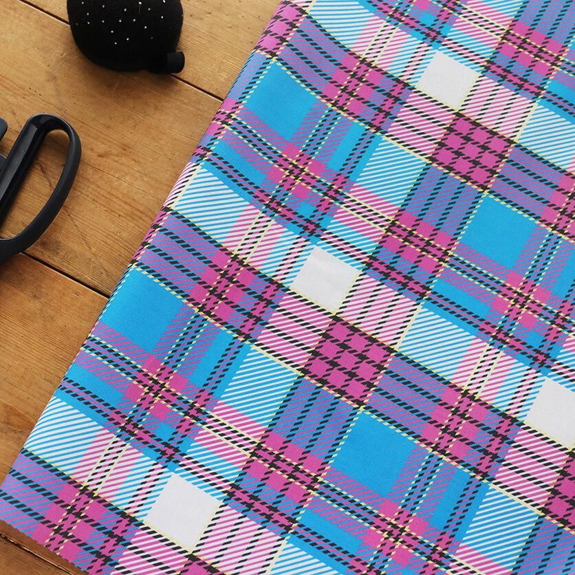 スタンダードで飽きのこない柄、タータンチェックはお洋服にぴったり。