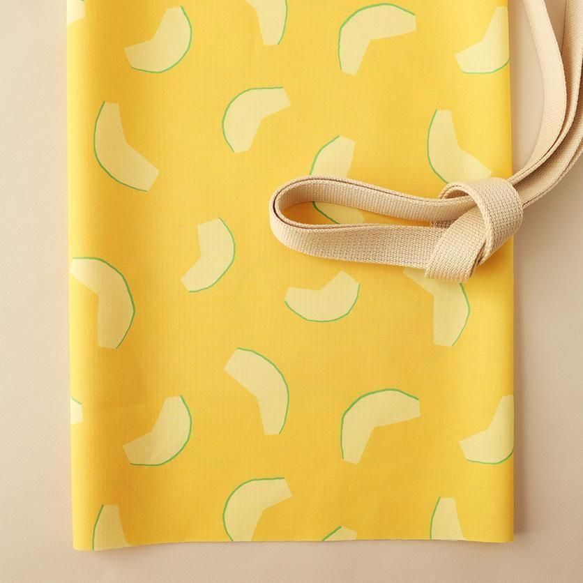 シャキッとした歯応えが聞こえてきそうな、優しいクリーム色の果肉、りんご。縁取りのアクセントカラーが、デザインをきゅっと引き締めるスパイスになっています。