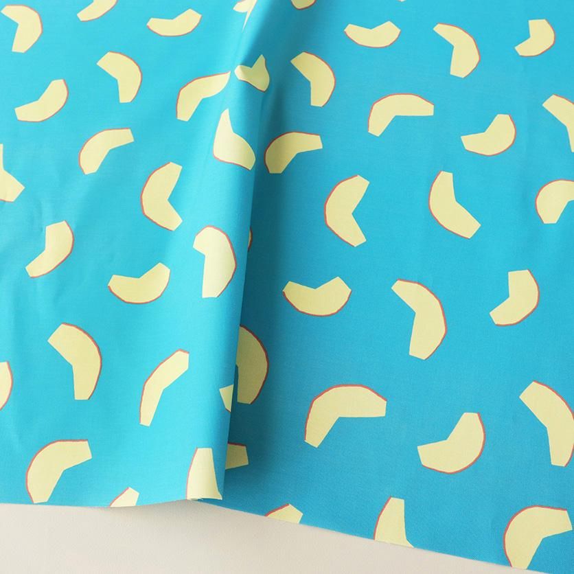 シャキッとした歯応えが聞こえてきそうな、優しいクリーム色の果肉、りんご。縁取りのアクセントカラーが、デザインをきゅっと引き締めるスパイスになっています。