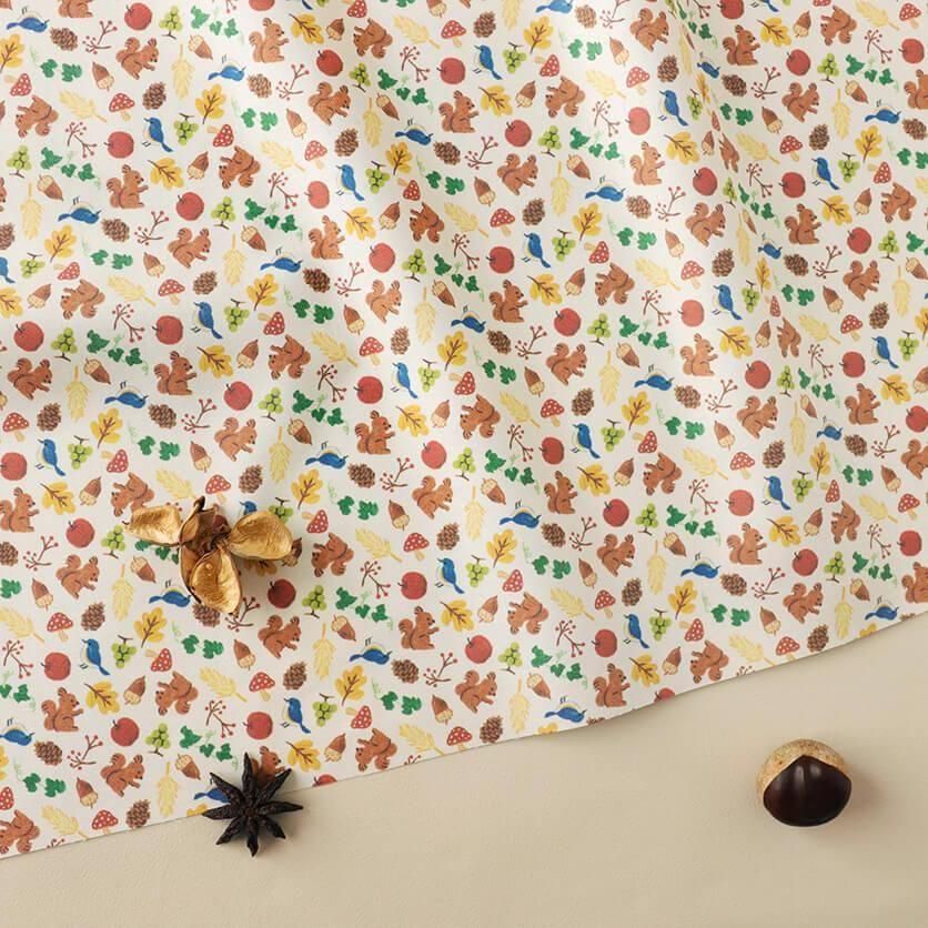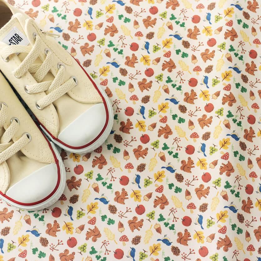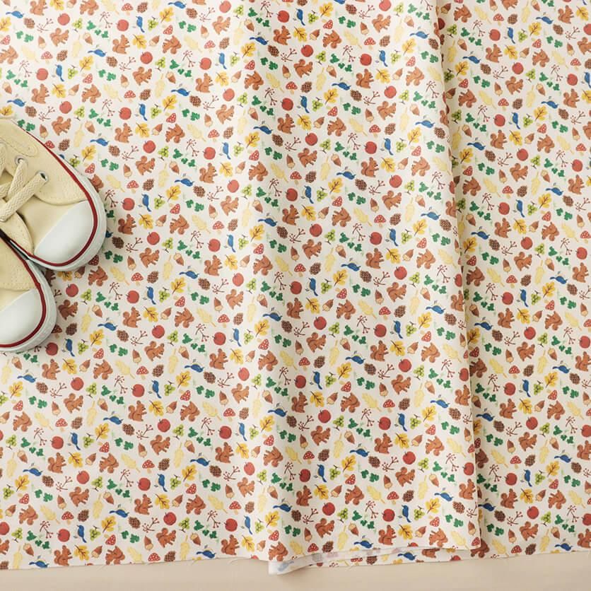 モチーフひとつひとつが小さめなので、お気に入りをしまうポーチや巾着、ブックカバーなどの小物作りにぴったり。 もちろん、お子様のスモックや、お部屋を彩るカフェカーテンにもおすすめです。 手にするたびに心がほっこりと温まる、そんな優しい物語をあなたの日常に紡ぎます。