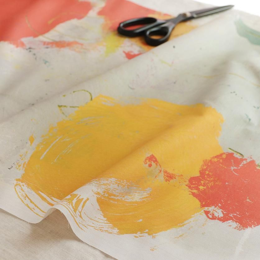 ・現在、すべてのデザインのプリントに使用している生地は6種類です。素材は100%コットン(オックス)・100%コットン(ダブルガーゼ)・100%コットン(ローン)・コットンリネン(ビエラ織)・100%コットン(ツイル)・100%コットン(キャンバス・11号帆布)です。