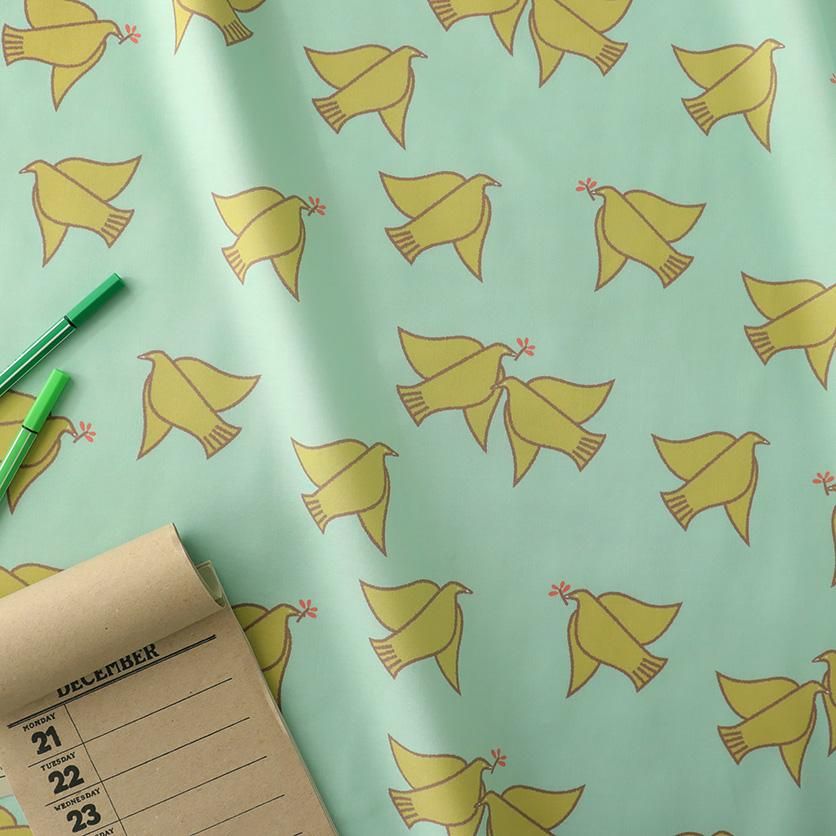 大空を自由自在に、そして優雅に舞うハトたちが描かれた、心安らぐテキスタイルデザインです。