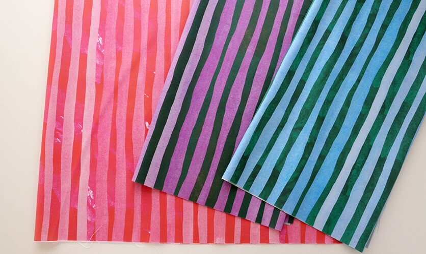 均一ではないストライプの表情が、作品に温もりのあるニュアンスを加えてくれます。
