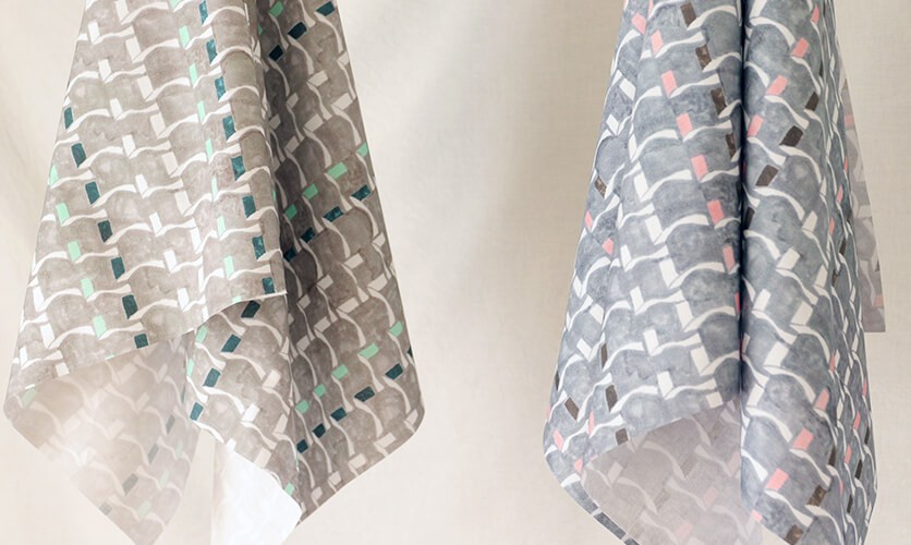 日本古来の和柄としても親しまれている籠(かご)目柄を、お家にある「あけびの籠」から着想を得て現代的にアップデートしたテキスタイルデザインです。