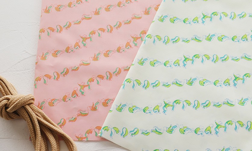 ・現在、すべてのデザインのプリントに使用している生地は6種類です。素材は100%コットン(オックス)・100%コットン(ダブルガーゼ)・100%コットン(ローン)・コットンリネン(ビエラ織)・100%コットン(ツイル)・100%コットン(キャンバス・11号帆布)です。