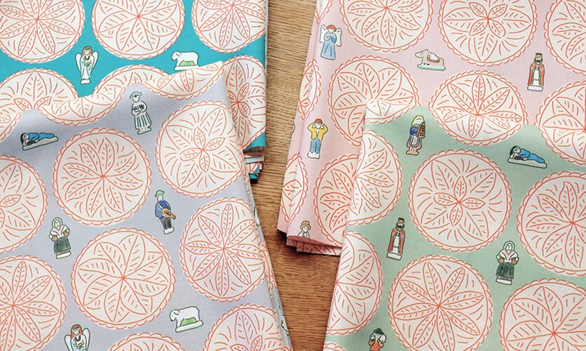 こいずみめいさんの個展に合わせて作られた特別なテキスタイルは、どこかノスタルジックで温かみのある雰囲気が魅力。