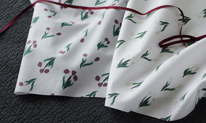 使い勝手の良い小花柄なので、ミニトートやコスメポーチ、お子様の着替え袋といったバッグ小物から、ブックカバーなどのデイリーアイテムにも最適です。