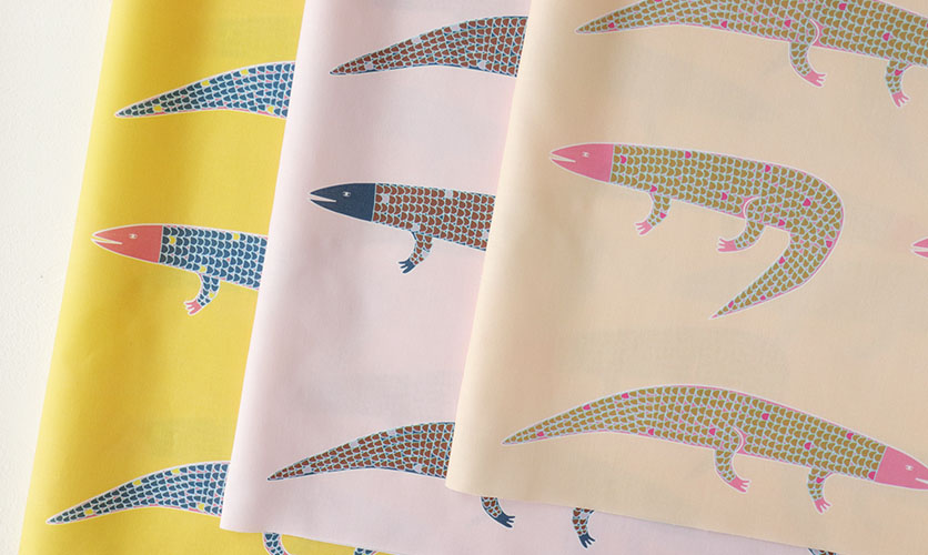 ・現在、すべてのデザインのプリントに使用している生地は6種類です。素材は100%コットン(オックス)・100%コットン(ダブルガーゼ)・100%コットン(ローン)・コットンリネン(ビエラ織)・100%コットン(ツイル)・100%コットン(キャンバス・11号帆布)です。