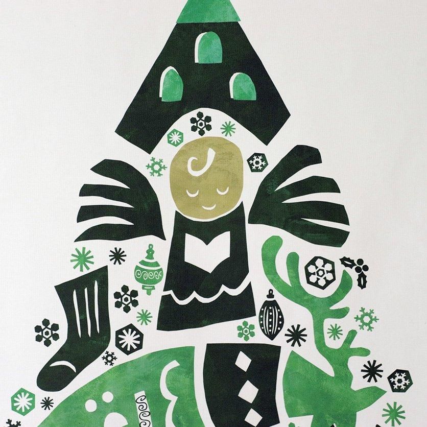 絵本作家・イラストレーターのさこももみさんによる、切り絵タッチで描くクリスマスツリー。