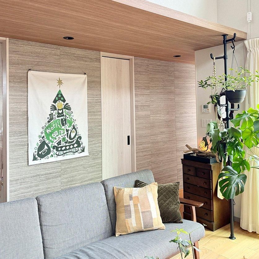 窓辺や壁に気軽に貼って飾れるミニサイズのクリスマスツリータペストリー
