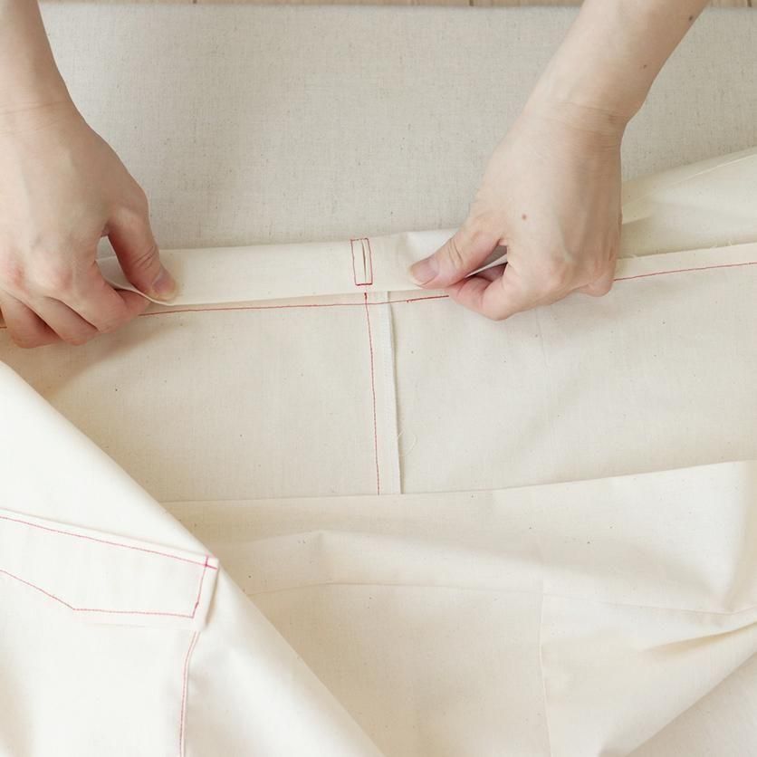 | 必要な材料・用尺 | [布] 1.9m/1.95m/2m(布幅108cmの場合)[ウエスト用ゴム S/M/L] (2cm幅)61cm/64cm/67cm ※目安 |
