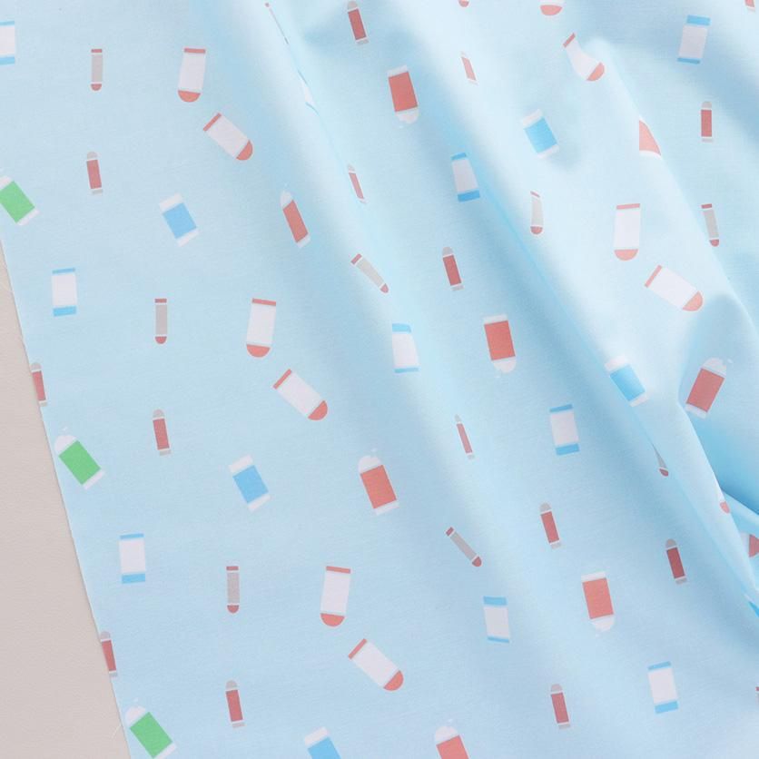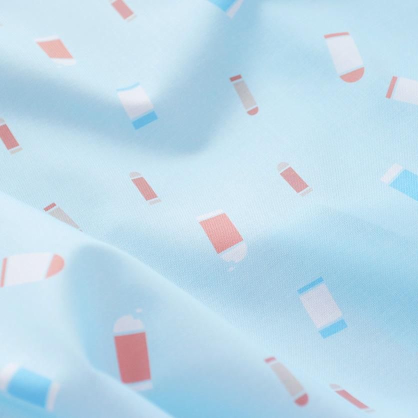 ・現在、すべてのデザインのプリントに使用している生地は6種類です。素材は100%コットン(オックス)・100%コットン(ダブルガーゼ)・100%コットン(ローン)・コットンリネン(ビエラ織)・100%コットン(ツイル)・100%コットン(キャンバス・11号帆布)です。
